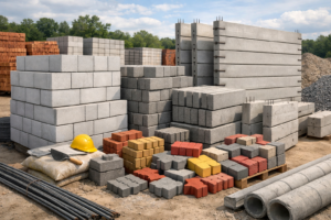AAC blocks, solid blocks, paver blocks, compound wall slabs, and other construction materials.